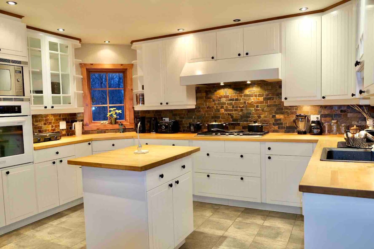 Servez-vous à notre bar à chocolat chaud (apportez votre lait). Installez-vous près du poêle à bois et relaxez. Profitez de l'hiver : patinage ou ski sur le lac, randonnées dans la neige, ou ralentissez, tout simplement. Admirez la vue depuis la galerie, partez le BBQ, observez les étoiles du quai ou profitez de la cuisine tout équipée, des livres et des jeux. À 40 minutes d’Ottawa/Gatineau, avec stationnement plat et facile. Enr.: "Chalet Lac McGlashan" / "Chalet sur des campeurs"