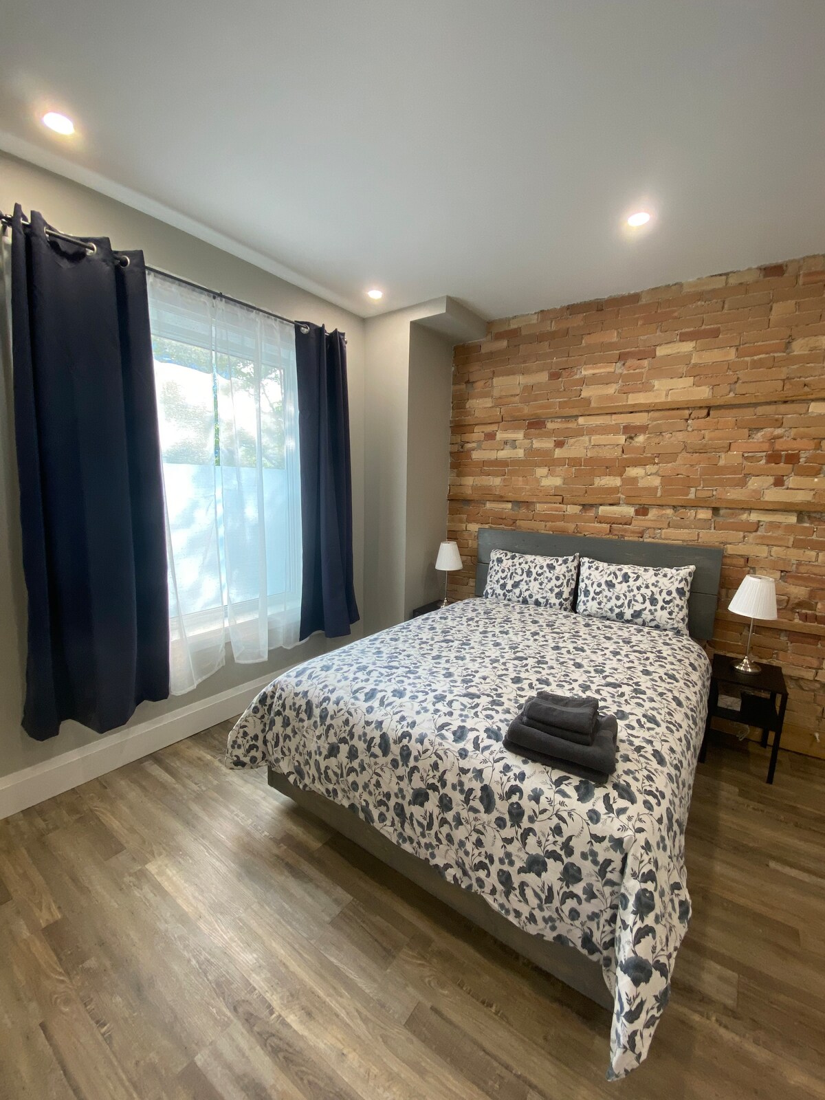 Situé dans une rue bordée d'arbres nichée entre le centre-ville de Kitchener et Uptown Waterloo, cet ancien magasin de bonbons vieux de 120 ans ; attaché à la maison principale, se trouve à quelques pas de la gare, des transports en commun, de Google, de l'hôpital Grand River et du sentier Spur Line adapté aux vélos. À quelques pas de l'épicerie, de la LCBO, des restaurants, des cafés, des boulangeries et des pubs brasserie. Place de parking, salle de bain privée et entrée privée au niveau de la rue, font de ce studio unique et lumineux une coupe au-dessus.