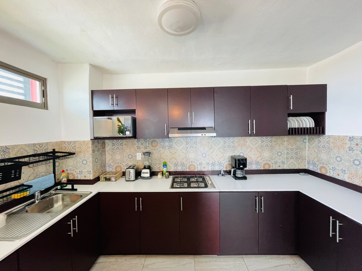 Appartement moderne au troisième niveau, idéal pour 3 personnes. Il dispose d'une chambre avec lit King size, d'un salon avec canapé-lit, d'une salle à manger, d'une cuisine équipée et d'une salle de bains complète avec eau chaude. Profitez d'une grande terrasse privée avec une belle vue sur la ville. Espaces confortables, propres et fonctionnels pour les courts ou longs séjours.