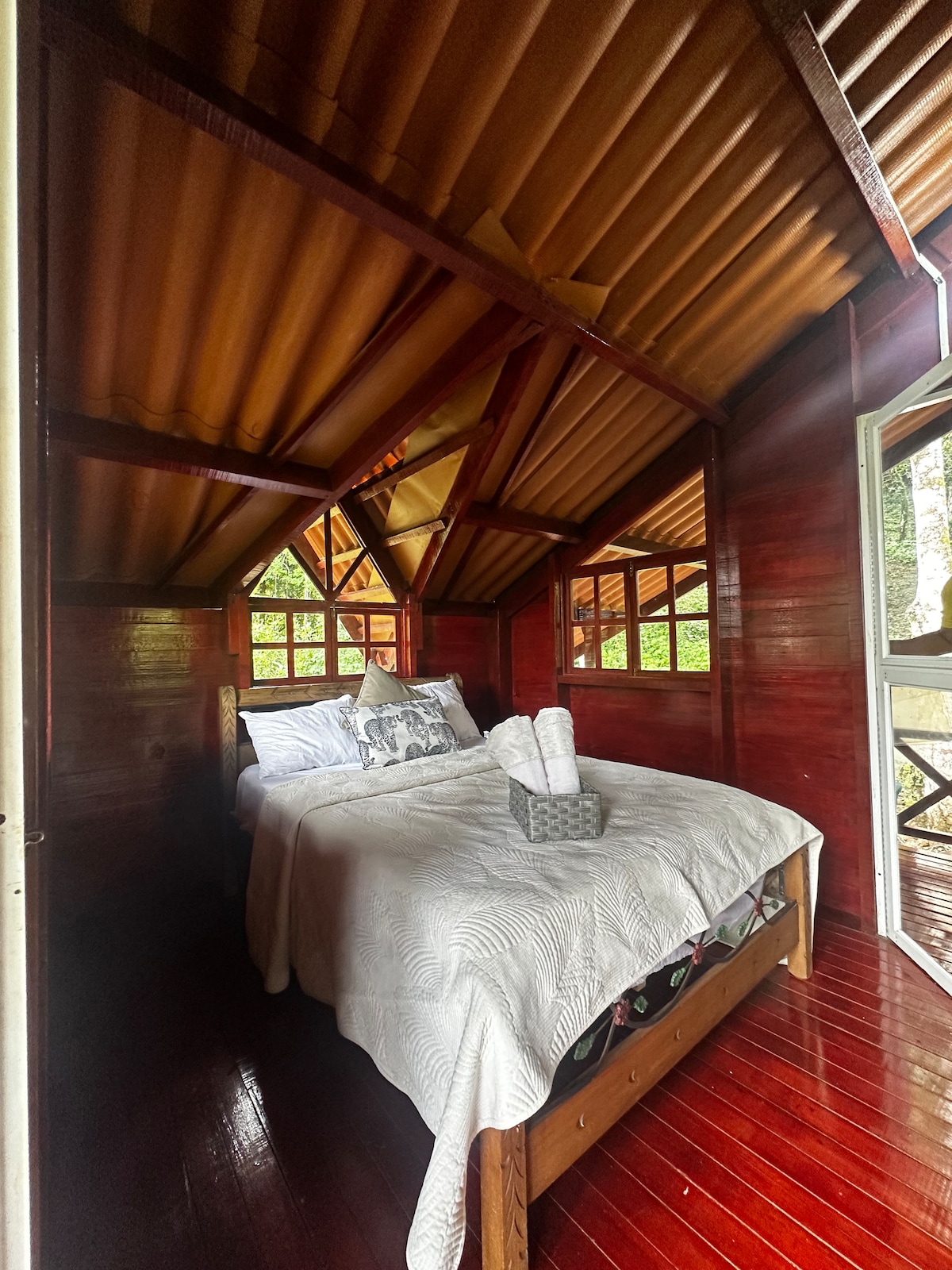 justinatinyhouse est niché dans les contreforts de la lagune de San Carlos et dispose de tout ce dont vous avez besoin pour votre séjour avec beaucoup de paix, une brise fraîche le matin et l'après-midi, une vue imprenable sur Altos del María, Sorá, Punta Chame, une rue de terre en bon état pour n'importe quelle voiture. Il dispose de la climatisation et de tout ce dont vous avez besoin pour votre séjour, il n'a pas de télévision, il y a une excellente couverture cellulaire. Je vous recommande d'apporter tout ce dont vous avez besoin pour votre alimentation, le magasin le plus proche est à 10 minutes en voiture