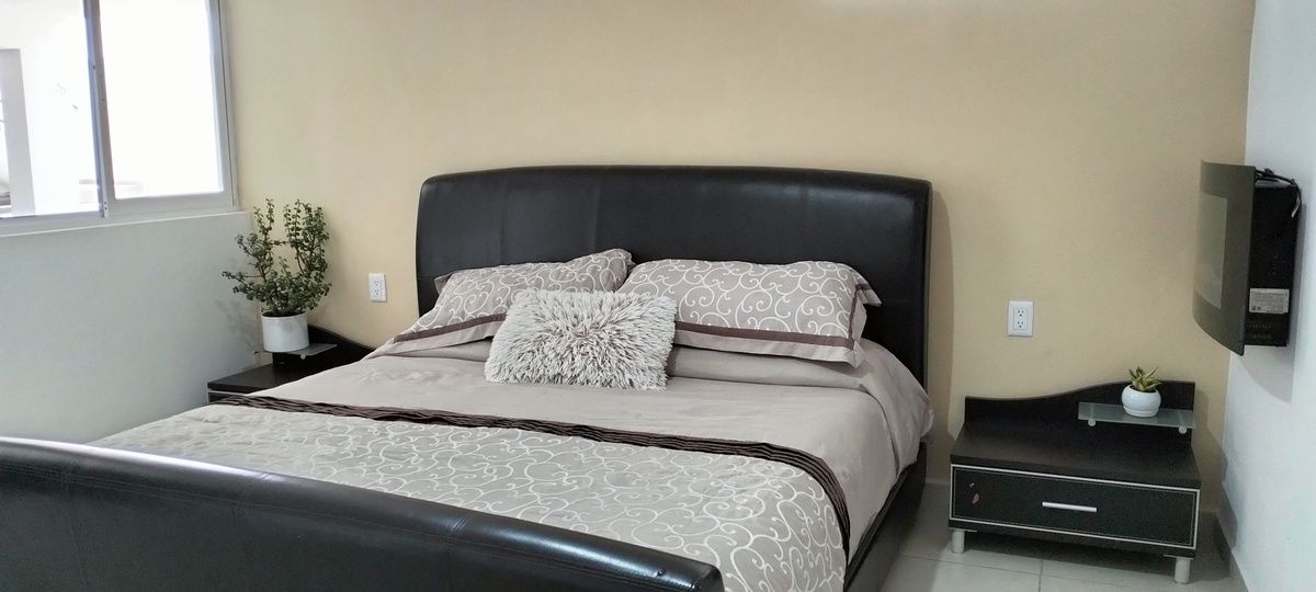 « Hébergement préféré des clients » Suite entièrement équipée, conçue pour vous offrir un merveilleux séjour à Zibatá, Querétaro. Dans le bâtiment, vous trouverez OXXO, une laverie et le charmant café Cafele. De plus, HEB et un golf sont à quelques pas. Vue spectaculaire, il dispose de 2 lits Queen Size, dont l'un est gonflable (demandez-le lors de la réservation ) dans la salle de télévision pour accueillir jusqu'à 4 adultes. NOUS ✨FACTURONS uniquement si vous le demandez lors de la réservation✨