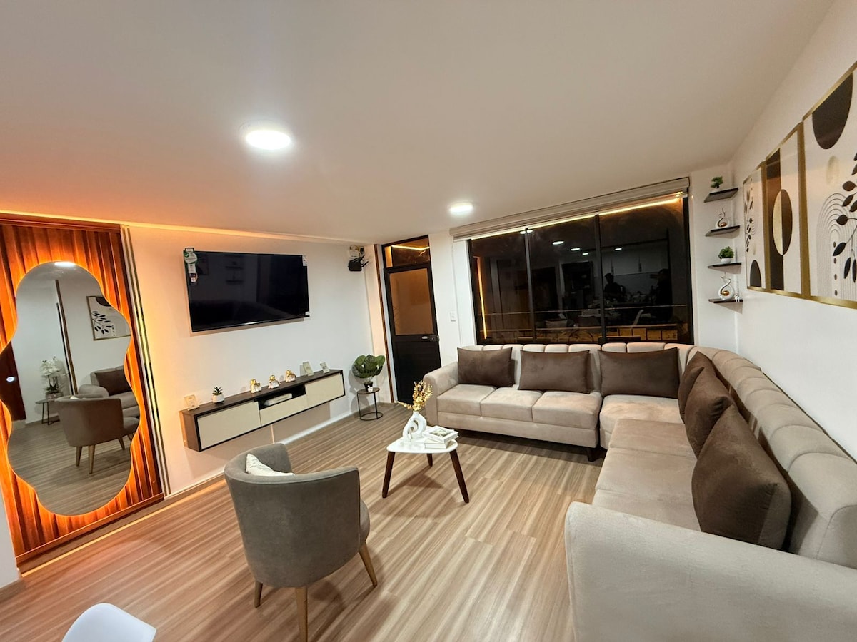 Departamento en Conjunto privado con áreas verdes, WiFi rápido, parqueadero y ambiente acogedor a solo 5 min del centro. Disfruta de 3 habitaciones amplias, cocina equipada, sala elegante y lavandería. Pensado tanto para vacaciones familiares como para viajes de trabajo, ofrece WiFi de alta velocidad, TV, ropa de cama de calidad, garaje privado y un ambiente cálido para descansar después de explorar la ciudad. Ubicación estratégica, ambientes impecables y hospitalidad.