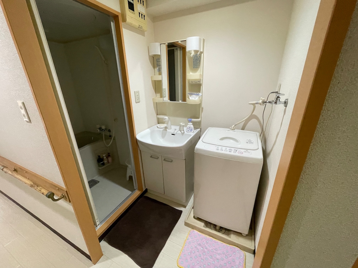 C'est un endroit très pratique, alors s'il vous plaît séjournez à « Nagomi 3 » et profitez du tourisme. Logements La maison de 40 m²/2ème étage est louée, et l'entrée privée fait face à la route, de sorte que vous pouvez entrer directement dans la chambre.Lorsque vous entrez par la porte d'entrée, il y a des escaliers qui mènent à la chambre au deuxième étage. Il y a également un supermarché à proximité, vous pouvez donc cuisiner comme à la maison. Cette chambre offre une atmosphère calme où vous pouvez sentir l'odeur des tatamis et la chaleur du bois.