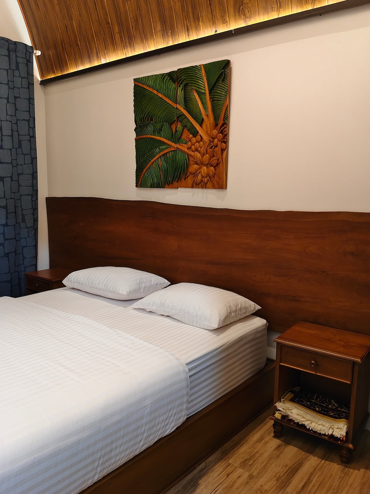 Bienvenue à la Villa Rumah Kebon, un paradis caché niché au milieu d'un beau jardin tranquille. Profitez d'un mélange parfait de beauté naturelle et de confort moderne dans notre villa exclusive. La maison de Kebon vous offre un merveilleux séjour avec des équipements et une décoration charmants. Entourée d'arbres luxuriants et de verdure, cette villa est un endroit idéal pour se détendre et se détendre.