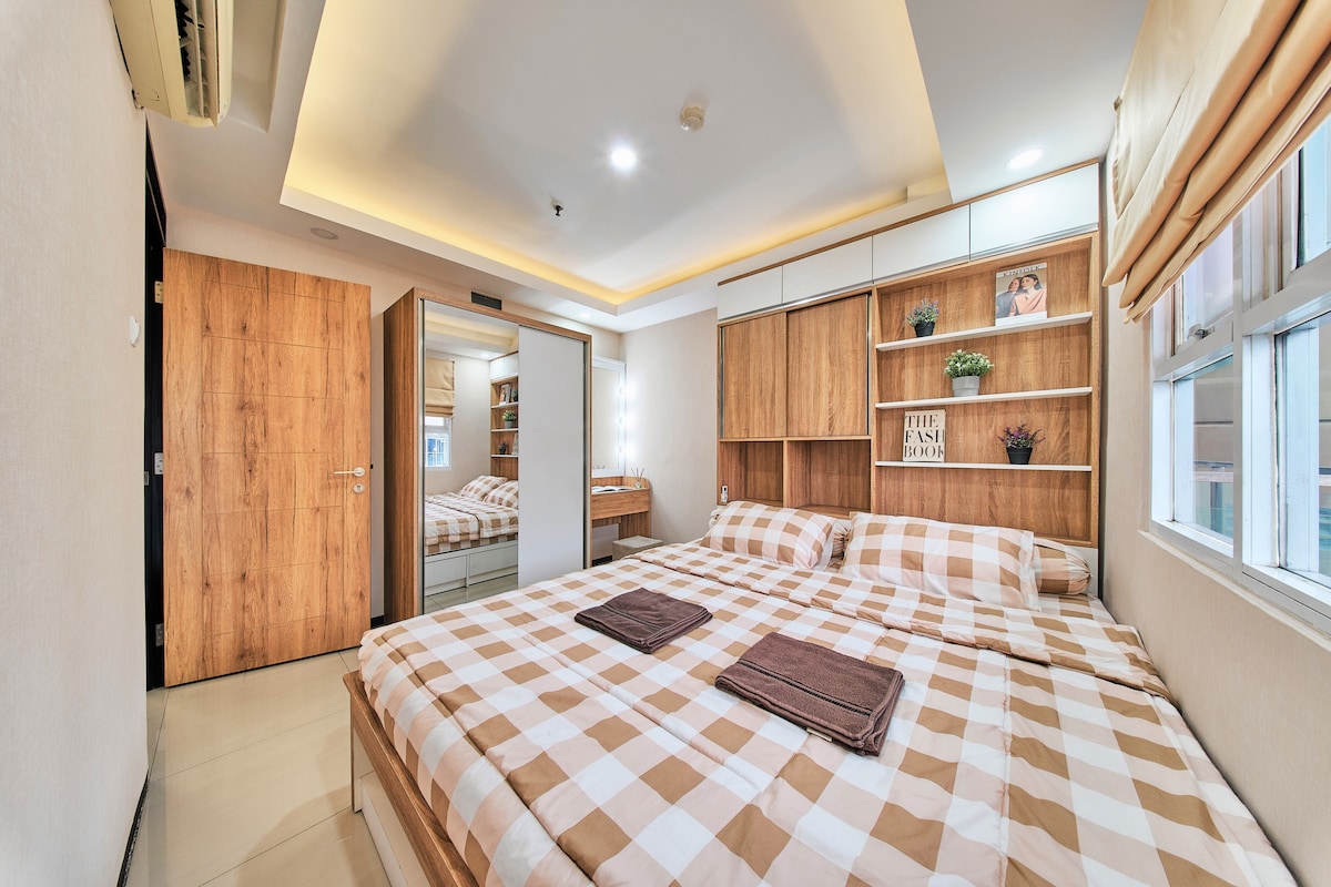 Couchages : 2 chambres avec formation de couchage : Lit principal : lit King Size, 2 personnes Chambre 2 : lit superposé, 2 personnes Canapé-lit : lit queen, 2 personnes POUR LES LOCATIONS QUOTIDIENNES : Tarif de stationnement de la première heure : 4 000 Rp suivants. 3 000 Rp. Stationnement de plus de 15 à 24 heures 45 000 IDR Wi-Fi et Netflix prêts POUR LES LOCATIONS MENSUELLES UNIQUEMENT : Le LOYER comprend l'IPL (y compris l'eau) et l'Internet illimité à 15 mbps Hors jetons d'électricité (système de jetons) et stationnement