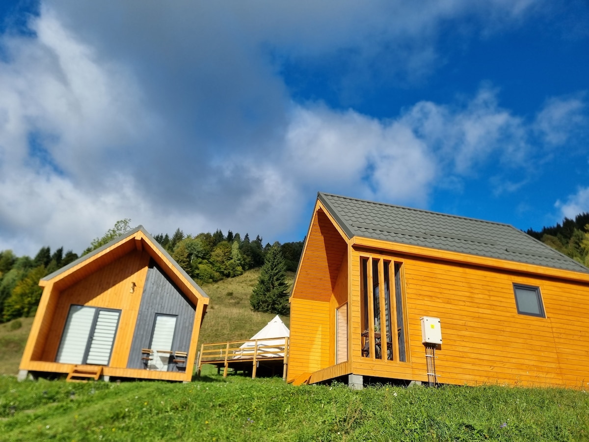 Emplacement unique en Roumanie, destiné aux voyageurs à la recherche d'expériences uniques, aux personnes désireuses de se détendre dans la nature ou aux couples. Notre retraite est entourée de forêts, à 1 km des maisons les plus proches, offrant une intégration parfaite avec la nature et un cadre intime et confortable. Dans notre cour, vous trouverez une cabane suédoise en verre avec une vue panoramique et un spectacle vers le ciel pendant les nuits, un belvédère avec le rôle de cuisine, de toilettes et de douche en plein air.