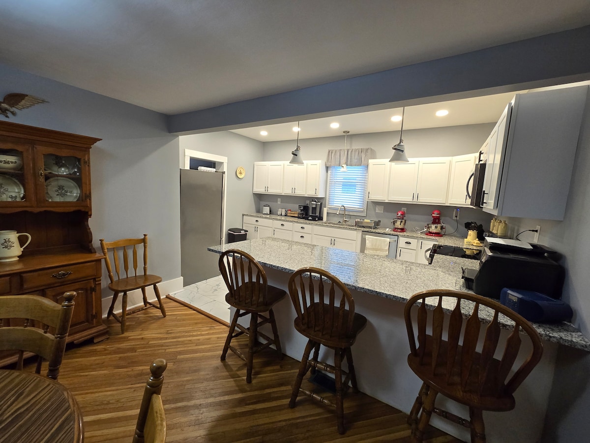 Amenez toute la famille dans cet endroit génial avec beaucoup d'espace ! Que vous passiez ou que vous passiez un peu de temps dans le sud de l'Illinois, pour le travail ou le plaisir, nous serions ravis de vous accueillir. Cette maison est spacieuse, avec une belle cuisine si vous voulez cuisiner et une IMMENSE pelouse si vous avez besoin de temps paisible à l'extérieur. Avec notre espace au sous-sol fini, nous avons de la place pour les réunions de famille, les douches pour bébés et de mariage, etc. ! Envoyez-nous un message pour organiser les détails de l'utilisation de notre logement pour ce type d'événements.