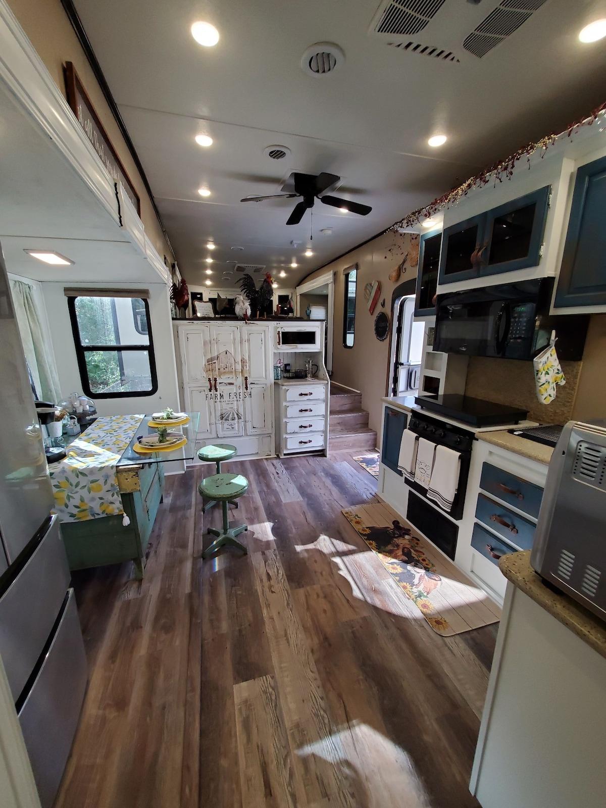 Reconnect with nature at this unforgettable escape , tucked away on its own acre, behind the host's home. 1 bedroom, 1 bath, sleeps 2. This cozy farmhouse decorated fifth wheel has wifi, a king size memory foam mattress, smart tv in the bedroom, smart tv in the living room with surround sound, induction cooktop, convection oven, and complimentary water. 5 minute drive to Publix, 10 minutes to our cute little Main St. downtown, all of our unique restaurants and to all of the manatee tour guides.