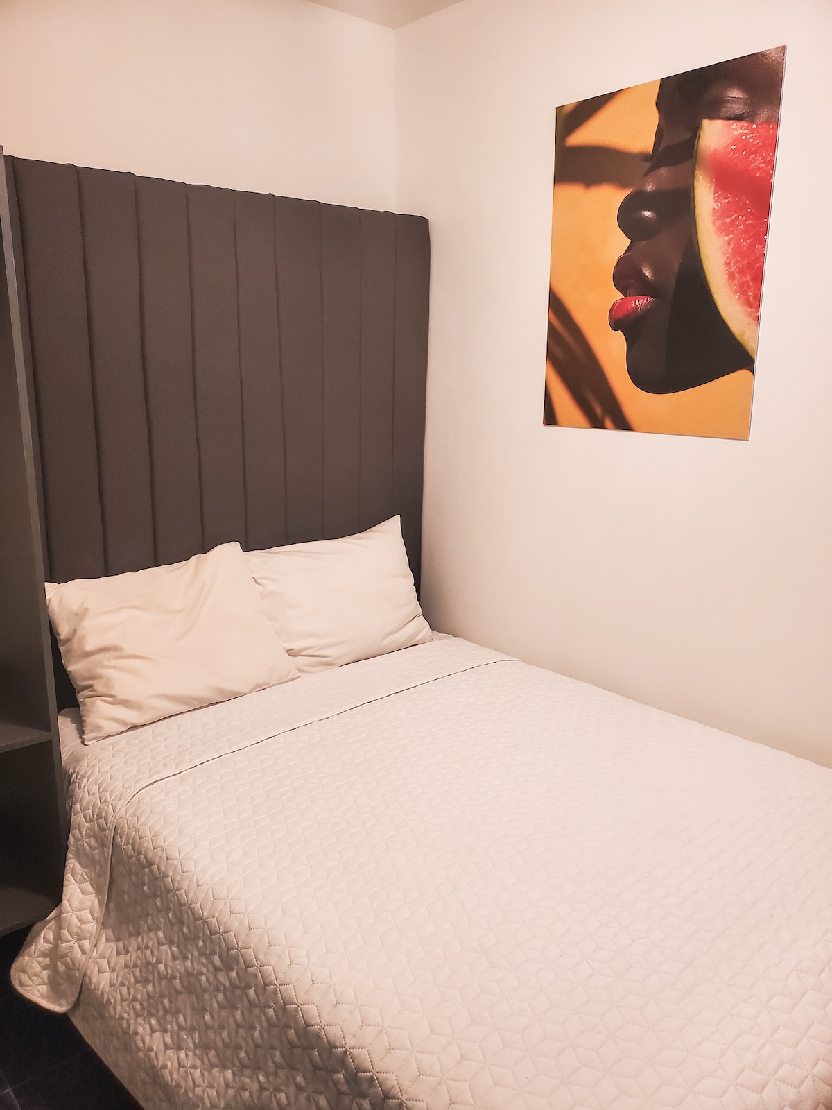 Située à quelques pas seulement du quartier historique et du centre animé de Monterrey, notre suite offre confort et style. Équipée d'un lit double pour un repos réparateur, d'un bureau idéal pour le travail ou la lecture, et d'une salle de bain privée qui assure intimité et confort. En outre, il dispose d'une télévision pour votre divertissement et d'un mini split pour que vous puissiez profiter de la température parfaite tout au long de votre séjour.