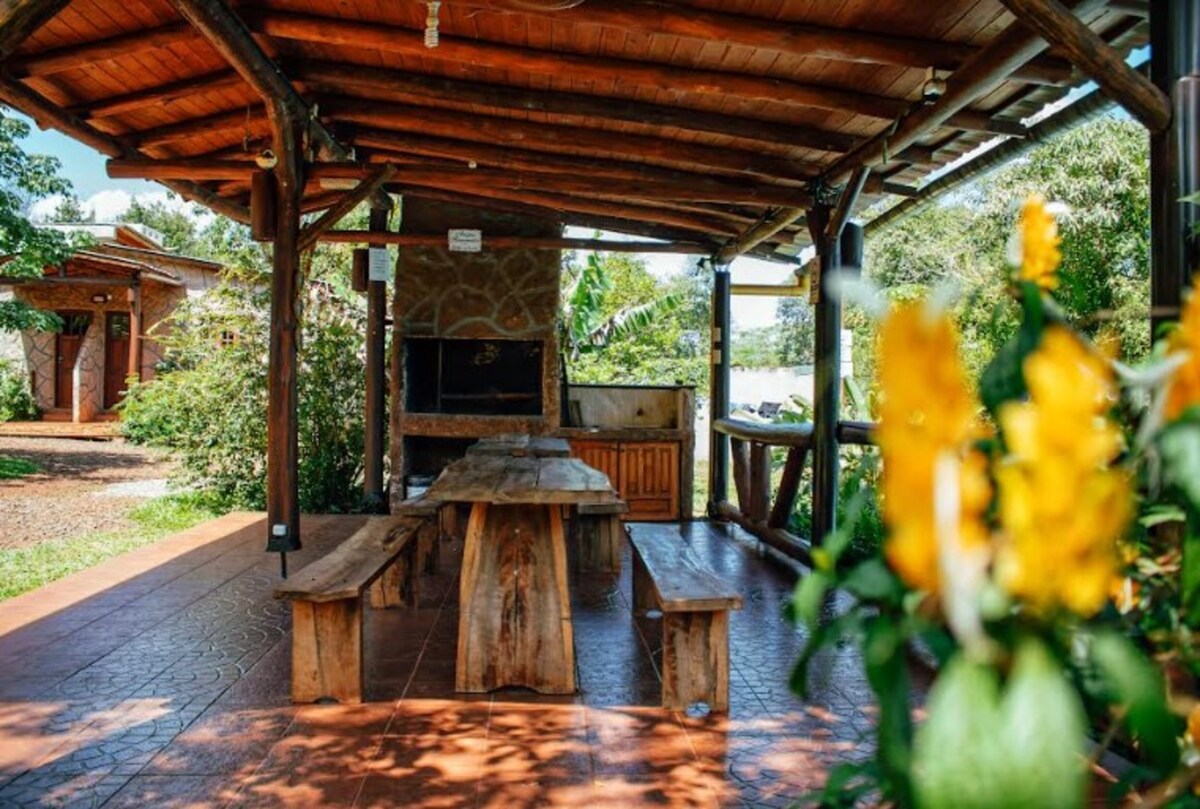 Uniques chalets centraux mais entourés de verdure, au cœur de Puerto Iguazú, un espace unique préservé pour garder la nature à l'état pur, l'emplacement stratégique font de cet espace unique et inégalé, car nous sommes juste autour de l'avenue de tous les restaurants gastronomiques de la ville et en face de l'arrêt de bus à Cararatas, nous avons également un supermarché à seulement traverser la rue