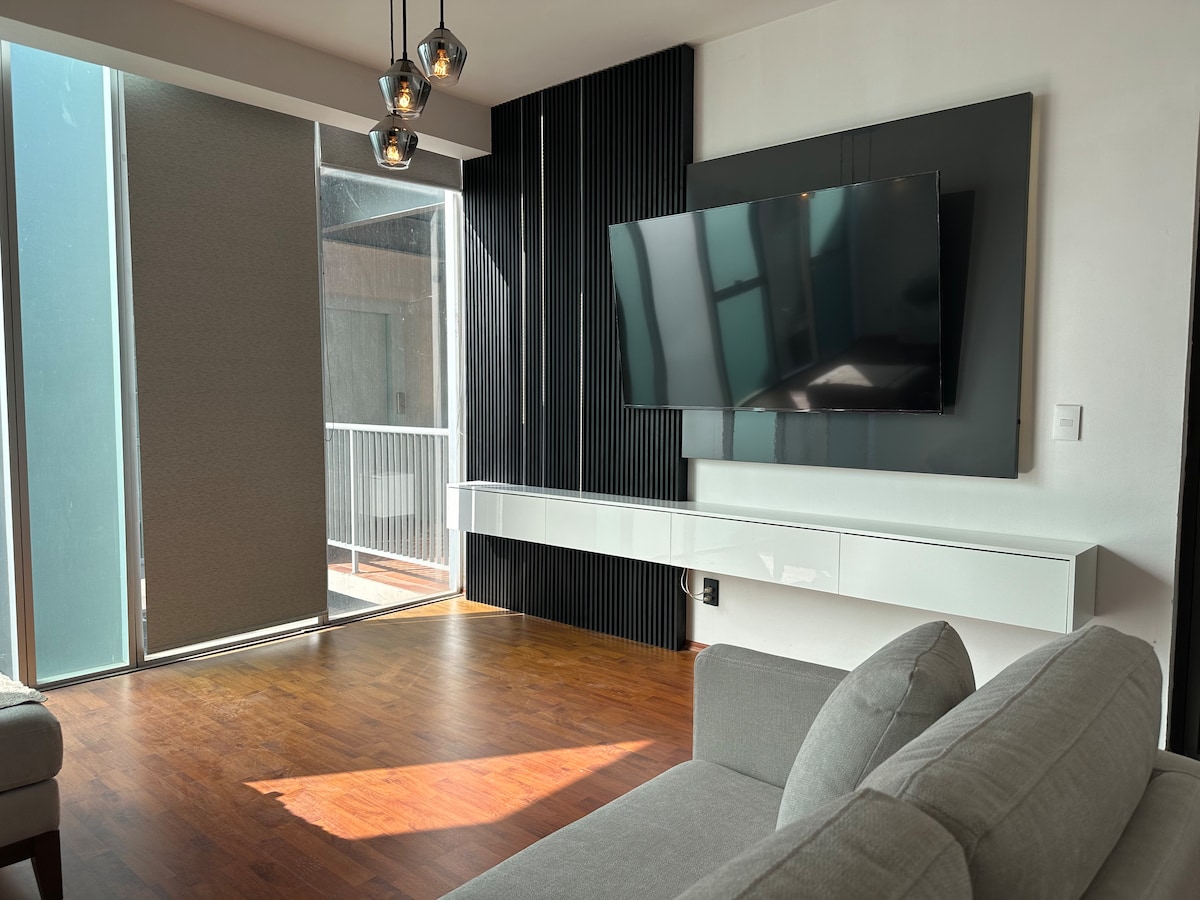 Departamento privado en zona exclusiva. Perfecto para trabajar y/o estudiar. Walmart Plazas comerciales a distancia a pie A 10 min del Club de Golf Sala y comedor, 1 recamara con cama matrimonial y 1 sofá cama Pet friendly (camita con memory foam incluida) Tapete de yoga y pesas 2 baños completos Internet TV +100 canales, Netflix, Disney, Prime, etc Cocina con horno, licuadora, cafetera Lavadora, ventilador Vigilancia 24h, estacionamiento y cajones de visitas, zona para correr