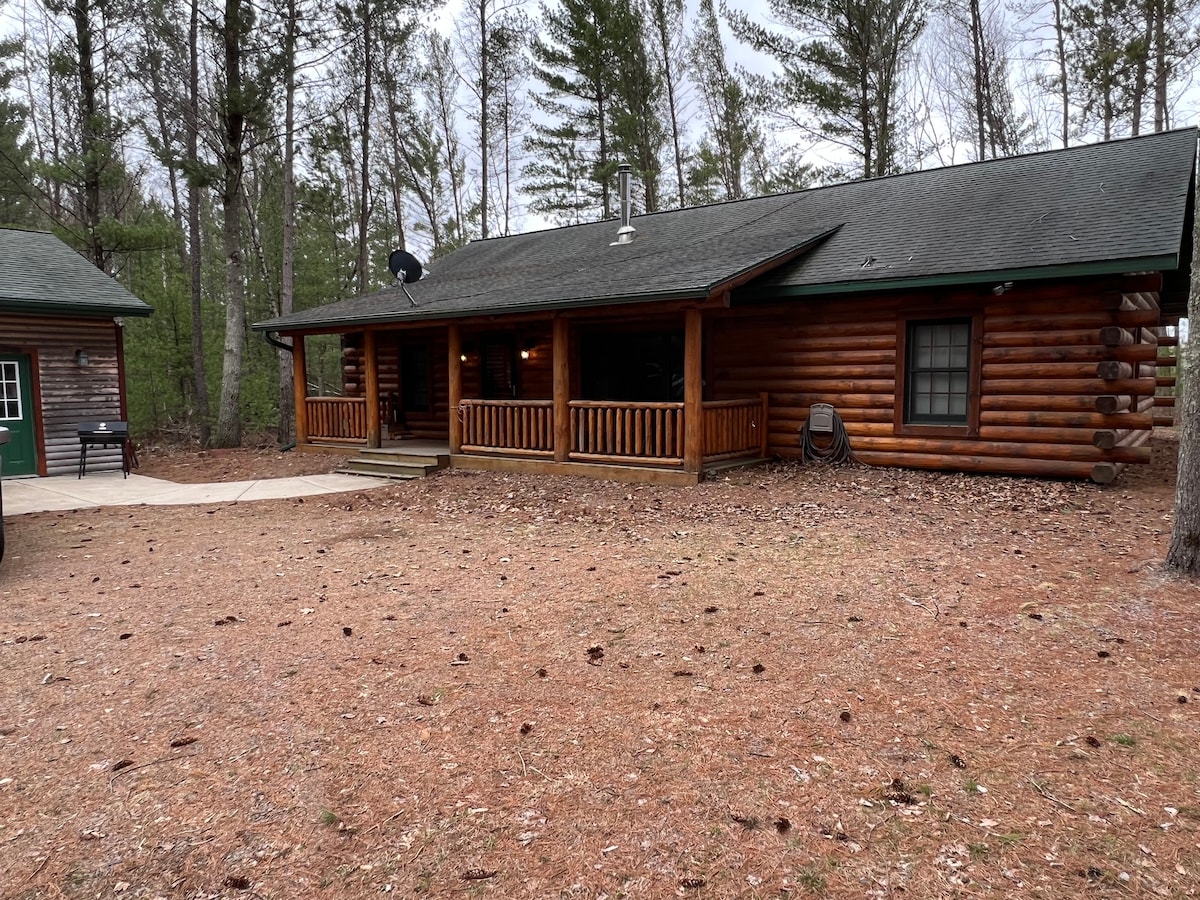 Évadez-vous dans les paisibles Northwoods dans le centre du Wisconsin. (2-2,5 de Madison et Minneapolis ; 4 à 5 heures de Chicago). Niché dans les grands pins blancs sur les rives du lac Arbutus. Imaginez que votre famille assise autour d'un feu de camp crée des souvenirs alors que les rayons du soleil dansent à travers la surface du lac. Accès direct aux sentiers de VTT et de motoneigistes. La cabane dispose d'un quai, de la pêche, de la natation et du kayak avec une plage publique à seulement 800 mètres. À quelques minutes du domaine skiable de Bruce Mound et de Levi 's Mound.