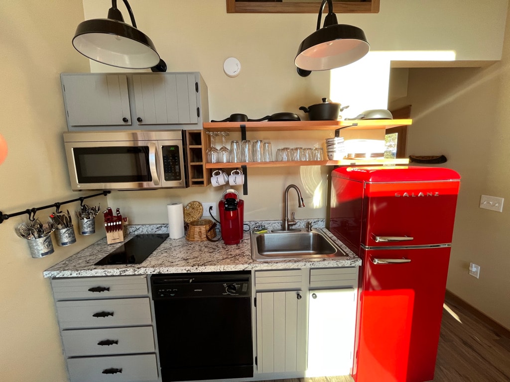 Cabane rustique chaleureuse et confortable. Convient parfaitement à une famille de 4 personnes (une personne supplémentaire est autorisée, il suffit de demander notre lit bébé). Espace pour camping-car disponible avec raccordements complets. 20 $ supplémentaires par nuit. Lit Queen Size et futon qui se déplie pour devenir un matelas complet, réfrigérateur, micro-ondes, cafetière (café fourni) et four grille-pain, cuisinière électrique à 2 feux avec poêles. Ustensiles de cuisine de base fournis. Nous aimons faire de petits trajets en voiture le soir pour observer la faune et admirer les magnifiques couchers de soleil.