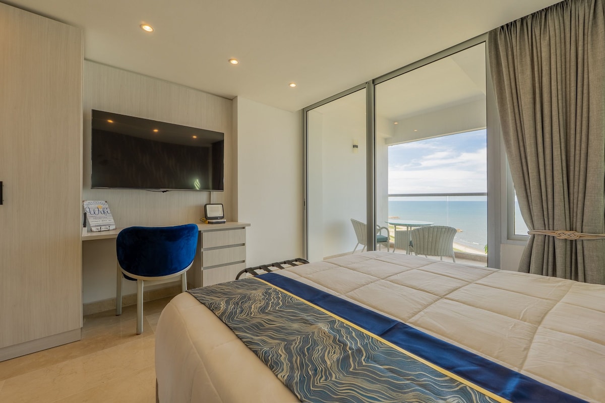 Suite Loft 1 chambre au cœur de Carthagène inspirée de certains des meilleurs hôtels 5 étoiles au monde. Situé à l'intérieur des murs de la vieille ville, à distance de marche des boutiques, des divertissements, des restaurants, des boîtes de nuit et des bars. Profitez de votre séjour dans cette ville classée au patrimoine mondial de l'Unesco, pleine d'histoire et d'excitation. Cuisine entièrement équipée avec lave-linge/sèche-linge, lit King Size, canapé Queen Size gigogne, télévision, Netflix et Wi-Fi 300 Mb. Notre appartement moderne à l'ambiance de plage est parfait pour qu'un couple en profite et se détende.