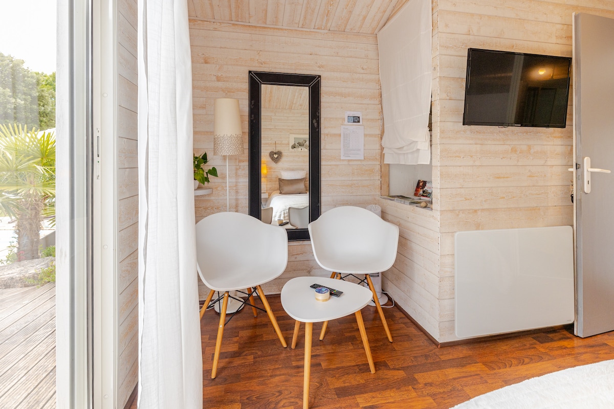 Détendez-vous dans une suite cocooning, idéal pour un couple. A votre disposition une espace détente privatif de 80m2, disposant d'un spa nage et Jacuzzi en intérieur, sans horaire d 'utilisation. Un petit déjeuner sucré, salé vous sera servi par votre hôte. Profitez également de l'espace détente extérieur sans vis à vis, uniquement que pour vous.