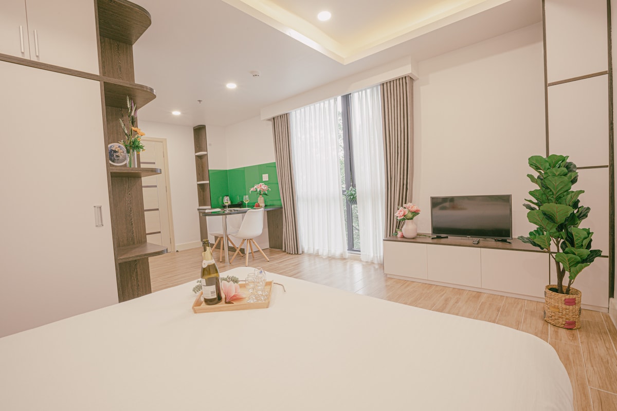 Un studio magnifiquement conçu avec tout ce dont vous avez besoin, situé au centre mais caché juste assez pour une nuit de sommeil paisible loin du bruit lourd de la ville. Idéal pour les voyageurs qui veulent explorer Saigon et qui recherchent un confort de qualité et une expérience plus locale. - Belle piscine - Wifi rapide gratuit, TV par câble - Équipements gratuits pour votre vie : laveuse, sécheuse, climatisation, réfrigérateur, eau chaude - Cuisine avec assez d'outils pour votre cuisine. Remarque : ne pas fournir/prendre en charge les factures de TVA