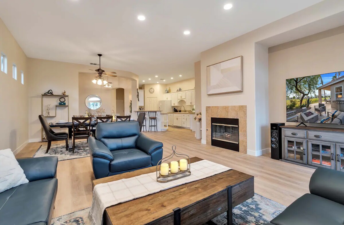 Brand new, light-filled, contemporary 3-bedroom Pool and Spa home lies at the top of La Quinta Cove with 270-degree Mountain Views Highlights: +Grand room open space concept +Chef’s kitchen +Cozy living room w/ fireplace +High ceilings +3 outdoor seating areas +High speed WIFI +3 TVs w Cable TV, HBO Max, Showtime Anytime, Netflix + Hulu +Barbeque +2 Car garage + Spectacular hiking and biking trails just one block away! +Top-rated golf and tennis courses nearby +Old Town La Quinta