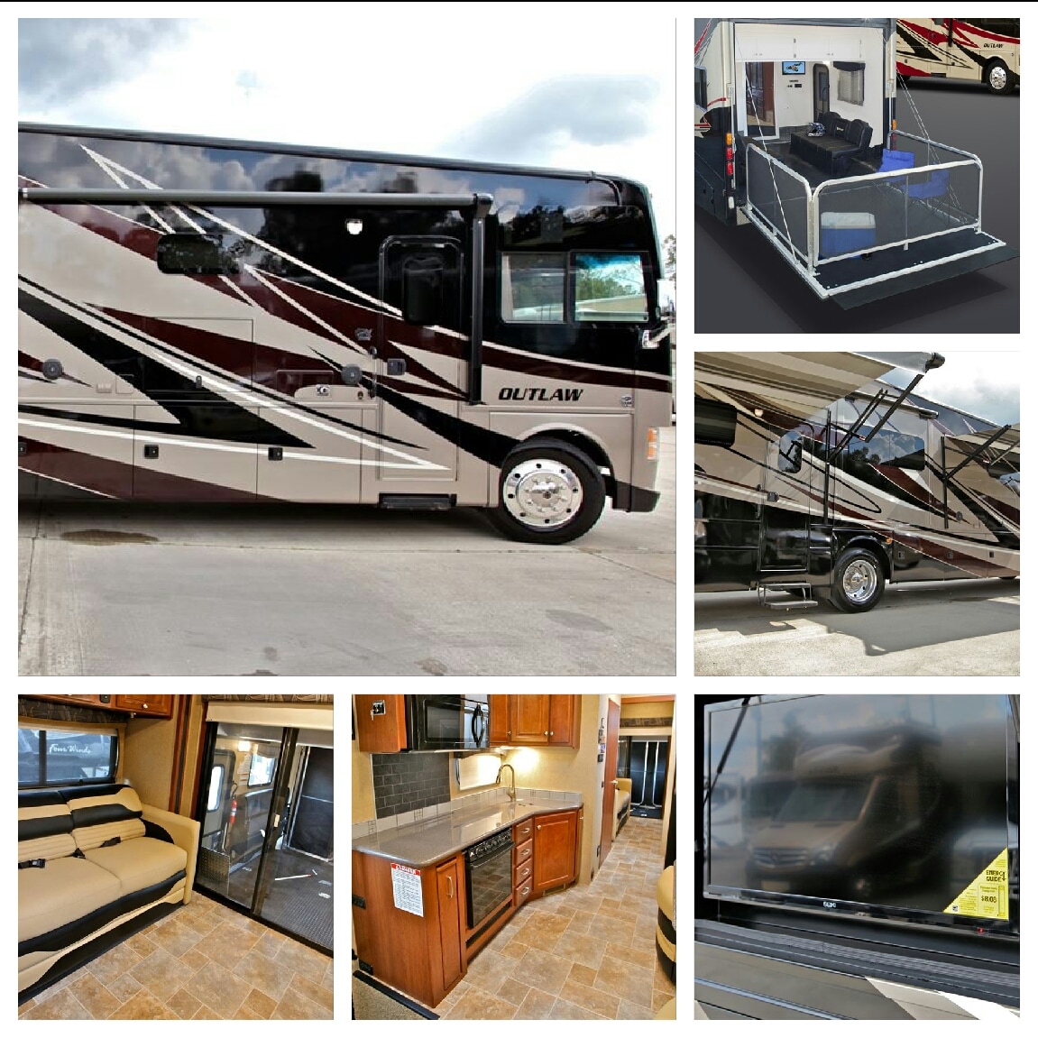 The Ultimate Luxury Super Bowl RV Peut accueillir jusqu'à 8 personnes ! Le caravane Outlaw 37MD Traveler étend les limites de ce que pourrait être un camping-car. Avec un plan d'étage, un intérieur et des espaces de couchage uniques et originaux placent le voyageur dans une classe à part entière. Le garage a des possibilités infinies comme un perchoir. Le forfait Super Bowl comprend le stationnement, la livraison, l'installation, le générateur illimité et le dépannage.