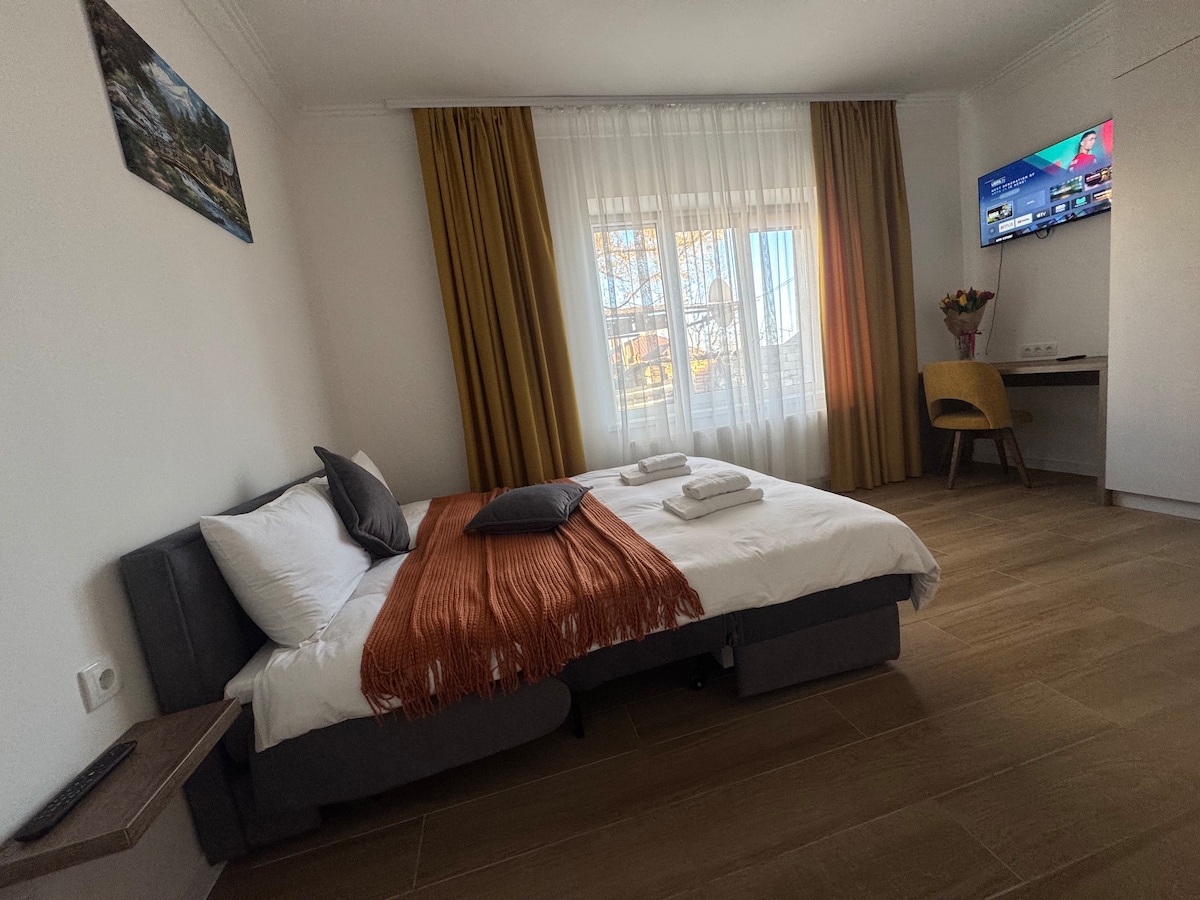 Moderne près de l'aéroport de Chișinău À seulement 20 minutes à pied de l'aéroport, cet appartement calme et moderne est parfait pour les voyageurs. Vous trouverez un supermarché, une pharmacie et un distributeur automatique de billets à 5-10 minutes. Accès facile aux transports en commun : le trolleybus 30 s'arrête à proximité et vous emmène au centre-ville en 20 à 30 minutes. Les taxis de l'aéroport ne prennent que 5 à 7 minutes. Parfait pour un séjour confortable et commode !