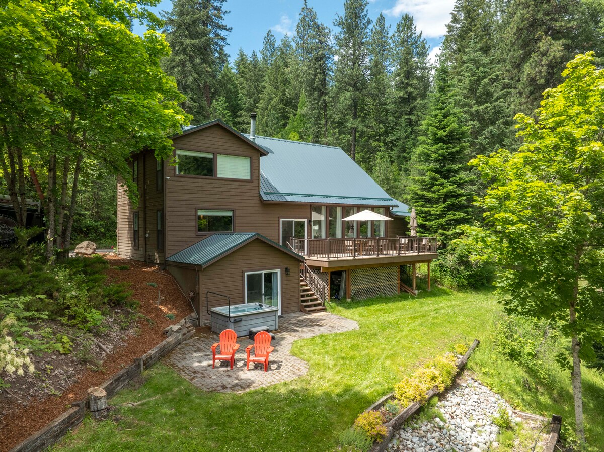 Niché dans un quartier calme dans les collines entre Coeur D'Alene et Hayden Lake se trouve notre nouvel appartement joliment meublé avec cuisine complète. - Appartement privé d'une chambre avec lit King Size - Marches d'accès inégales - n'ont pas de main courante. Aide avec les bagages disponible. (Voir photo) - Terrasse privée avec jacuzzi, foyer et télévision - 1 place de parking - WiFi fiable pour le travail - Lit Queen Aerobed disponible - À proximité des lacs, du ski, des restaurants, de Silverwood et des commerces Nous vivons au-dessus de vous, mais nous nous couchons tôt et ne dansons pas !
