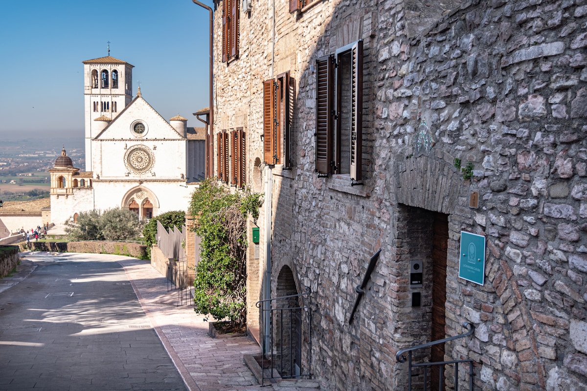 Il monolocale è nel centro storico , è indipendente , si trova ne nel quartiere più antico di Assisi, ai piedi della rocca Maggiore all'interno della zona a traffico limitato. C'è il parcheggio Piazza Matteotti a pagamento a circa 100 metri, c'è la possibilità di parcheggiare fuori dal centro storico a circa 500 metri in Via Renzo Rosati