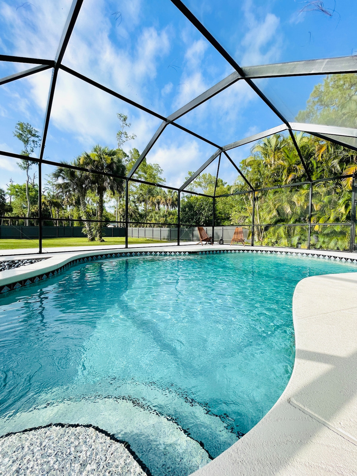 Arrivée autonome dans cette charmante villa et adoptez le style de vie local à Naples. Nous sommes à distance de conduite des restaurants, boutiques et plages. Notre logement comprend 4 chambres, 3 salles de bains et une piscine privée. Entièrement clôturée, idéale pour les enfants et les animaux de compagnie pour jouer en toute sécurité tout en profitant du confort côtier ultime. Située dans une zone à faible circulation et à faible bruit. Grand parking et cour avant et arrière spacieuses. Idéal pour garer de grands véhicules, des VR, des bateaux et accueillir plusieurs familles.
