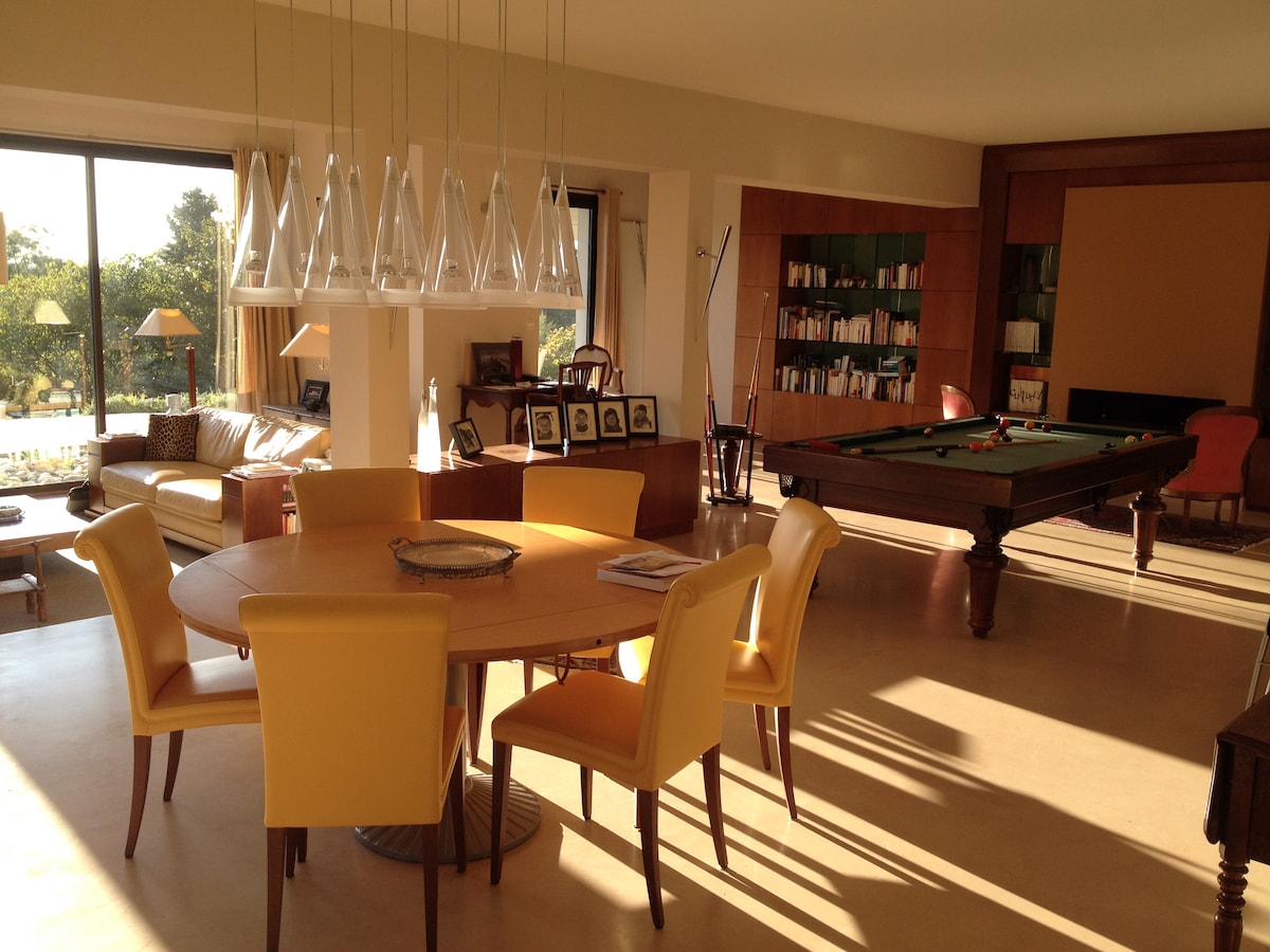 La chambre est dans ma maison avec jardin et cour privative intérieure pour garer votre voiture et est située dans quartier résidentiel calme aux environs proche du centre ville accessible en transport en commun (voir détails). Vous pourrez utiliser les lieux communs du RDC (cuisine et ses équipements, salle à manger, grande terrasse extérieure ...). Un petit déjeuner complet comprenant de base confiture, beurre, pain ou pain grillé, jus de fruit, café, thé, café au lait, chocolat... est fourni