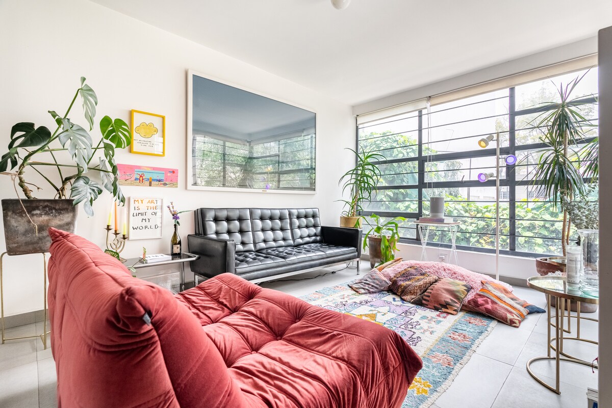 Loft moderne et élégant au cœur de Mexico avec une entrée privée et situé dans un bâtiment sûr et sécurisé. Profitez de hauts plafonds, de la lumière naturelle, d'une cuisine entièrement équipée, d'une connexion Wi-Fi rapide et d'une télévision connectée. Marchez jusqu'aux cafés, parcs et attractions locaux. Parfait pour les voyageurs en solo ou les couples à la recherche de confort, d'intimité et de commodité. Conçu avec soin pour un séjour relaxant et indépendant. Nous sommes à votre disposition si nécessaire !