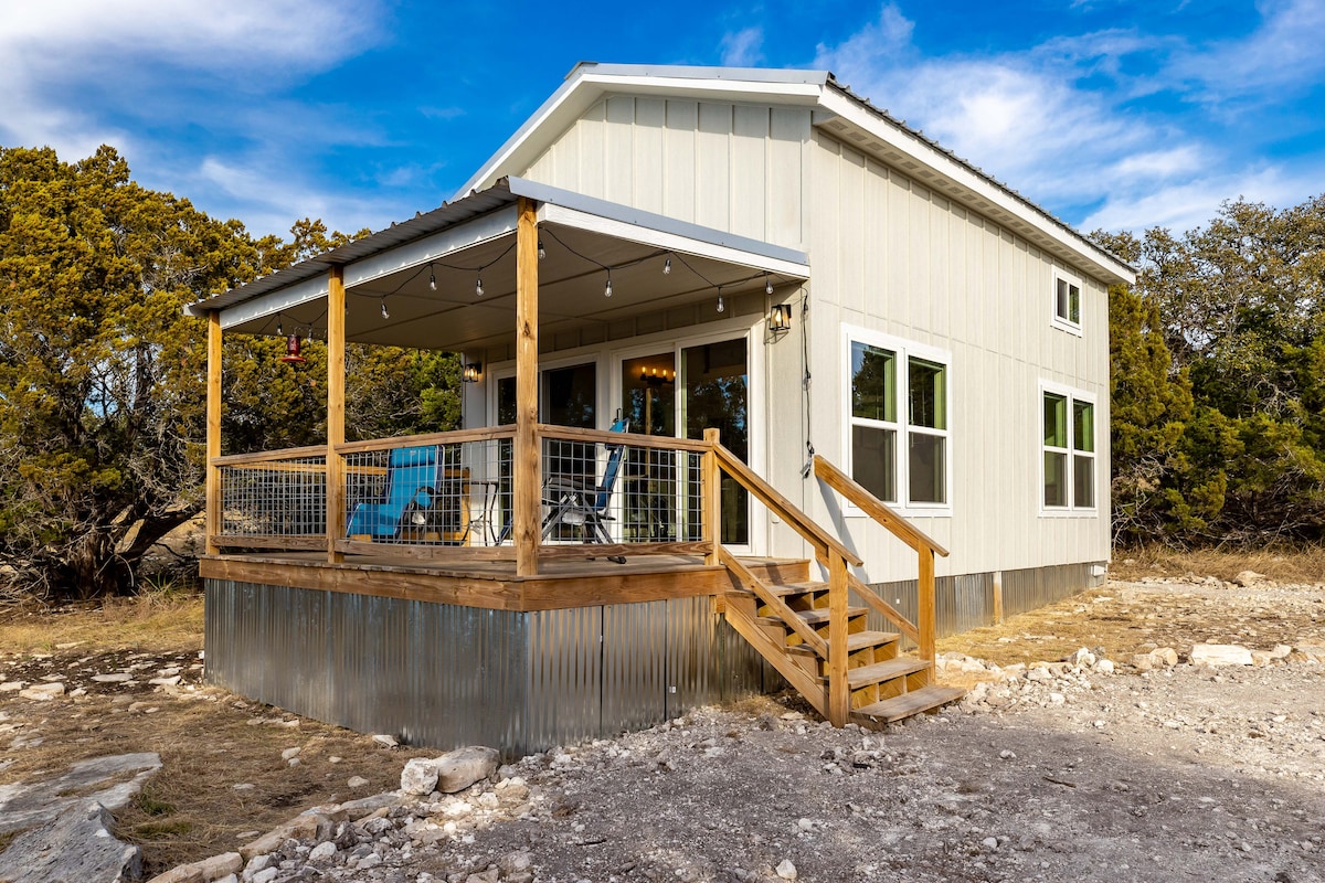 Cette retraite rurale astucieuse est un mélange de charme pittoresque et d'élégance moderne. Rapprochez-vous d'un être cher ou déconnectez-vous du monde. Admirez le coucher du soleil ou observez les étoiles en toute intimité depuis le porche ou le jacuzzi qui surplombe une prairie entourée d'arbres. Entrez dans un flot de lumière naturelle. Préparez un repas dans la cuisine entièrement équipée. Passez une bonne nuit de sommeil dans le lit king-size bio. Explorez les vignobles, les brasseries et les sentiers de randonnée à proximité. Austin est également à quelques minutes en voiture d'ici !