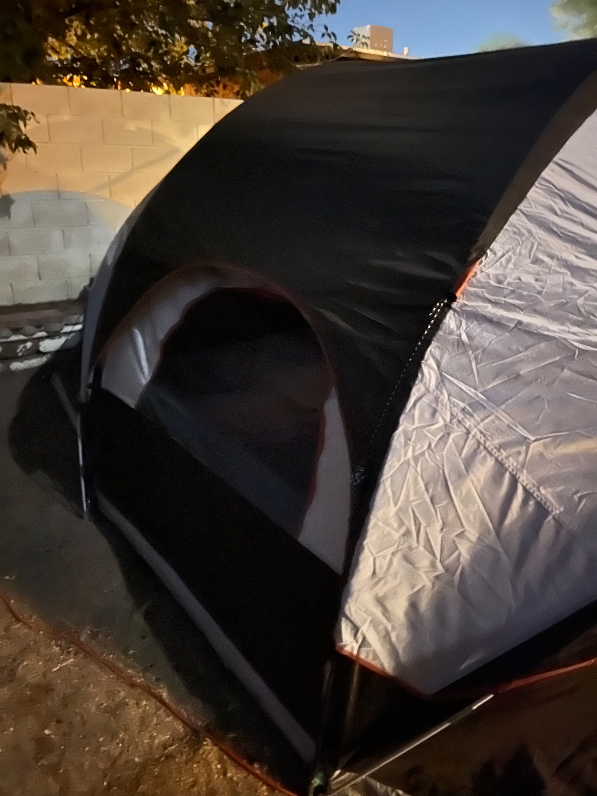 This is a fenced area to camp with your tent or a small RV. You are coming to a fenced 5 acre parcel to camp. There are no beds or bedrooms, just the simple basics. We have a pool in the back yard for your use, gas grill, and in process of building outdoor shower area, indoor bathroom available as well. The stars are amazing and so are the sunsets. We are 3/4 of a mile from the freeway so you may hear traffic, depending on where you set up. One space per 2 people.