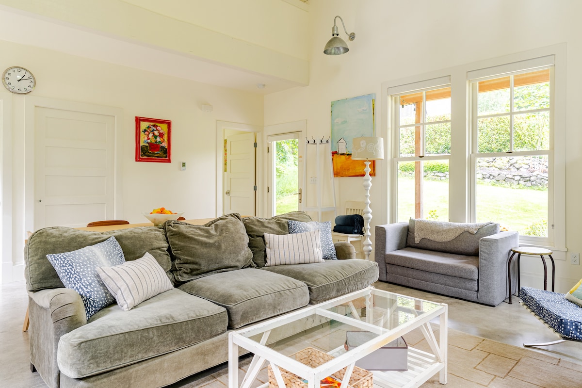 Venez vous détendre au Retreat at August Ciderhouse sur la péninsule de Kitsap. Cette maison récemment rénovée avec grange attenante est un bonheur rural de 2 acres facile d'accès. Profitez d'un moment de détente dans les Adirondacks, prenez un verre dans la grange ou blottissez-vous pour une soirée cinéma - tout vous attend. Faites de ce gîte à la ferme votre base pour explorer l'ouest de Washington. Les ferries pour Seattle et Edmonds sont à seulement un mile, et la péninsule olympique et de nombreux parcs d'État sont à moins de 20 minutes en voiture.