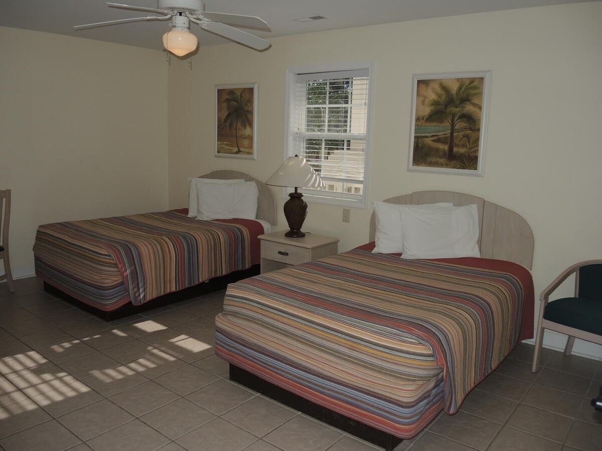 We welcome you to share our outstanding resort amenities at the Property Manager Resort and Golf in the quaint community of Calabash, North Carolina. We offer beautifully furnished villas with a variety of different bedding options with bright, airy interiors that are tastefully furnished. Each unit offers ceiling fans, tv's and a Keurig coffee maker to get your morning started right! Make sure your bring your K-cups. Our Studio Villa units can house up to 4 in two double or queen beds.