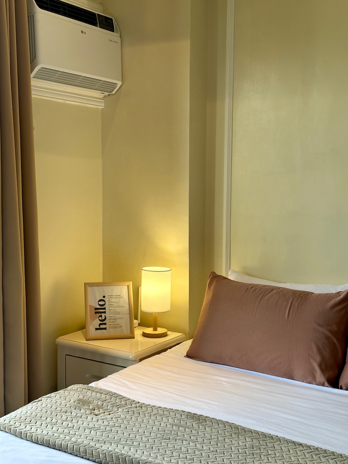 Profitez d'un logement élégant et central. Détendez-vous dans cette unité de condo entièrement confortable, moderne et dynamique qui est idéalement située à proximité de l'aéroport international de Mactan. Proche de tout, comme des restaurants, des cafés, des laveries, des centres commerciaux et des supermarchés. - À 3-5 minutes de l'aéroport de Mactan à Cebu - Deux lits jumeaux de 48 x 75 pouces - Connexion Wi-Fi jusqu'à 100 Mbps - Netflix gratuit - Batterie de cuisine complète et ustensiles pour cuisiner - Espace repas en plein air sur notre balcon relaxant