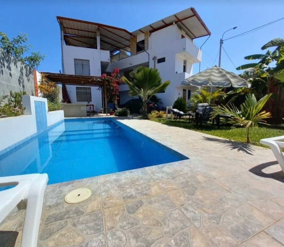 Venez vous détendre et vous amuser à la Casa Palma, face à la mer de Zorritos, avec vos amis ou votre famille. Passez quelques jours merveilleux à manger délicieux et à profiter d'un environnement calme et différent. La maison est située à Bocapán Zorritos, Tumbes pouvant accueillir 15 personnes, toutes les chambres avec vue sur la mer, 03 terrasses, salle à manger intérieure et extérieure, barbecue, piscine et bien plus encore. Nous avons le personnel nécessaire pour que votre séjour ne manque de rien. Animaux de compagnie : 1 chien
