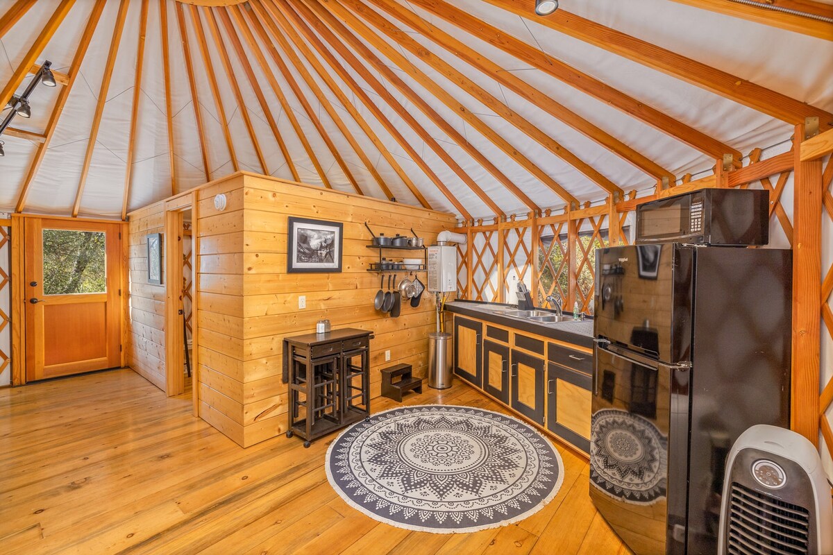 Vous avez fait tout ce chemin, pourquoi rester en ville ? Profitez de vues à longue portée, d'intimité et de calme. Vous êtes d'un côté de notre jardin et verger biologiques, nous sommes de l'autre. Cette maison d'hôtes est conçue pour répondre à vos besoins, avec une cuisine complète, une buanderie et une baignoire sur pieds. Nous l'avons construite pour dépasser toutes les normes d'efficacité énergétique, elle est donc confortable en hiver et fraîche en été. Nous sommes une « entreprise verte » certifiée CA. Nous nous efforçons de promouvoir une culture d'efficacité énergétique et de durabilité.