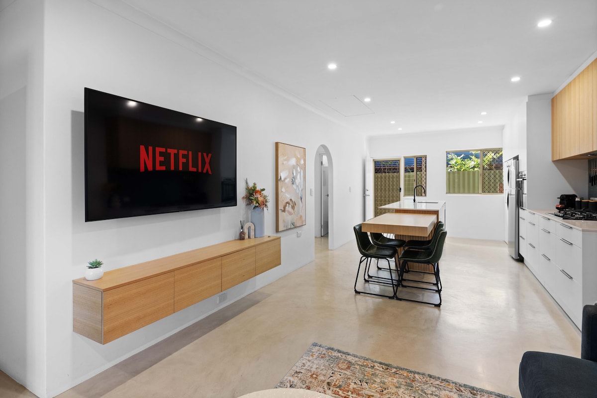 Vivez le rêve ! Laissez vos rêves se réaliser dans cet appartement mignon et élégant de Cottesloe Beach. À seulement 100 m de la célèbre plage de Cottesloe, vous pourrez voir jusqu'à l'île Rottnest et Fremantle. Notre appartement de 2 lits peut accueillir 4 personnes dans 2 chambres, un lit King Size et deux lits simples. Il y a une salle de bains moderne et une cuisine complète avec lave-linge séchant et machine à café. Deux espaces extérieurs privés : un grand jardin avec vue sur la mer et un patio pour les repas en extérieur.