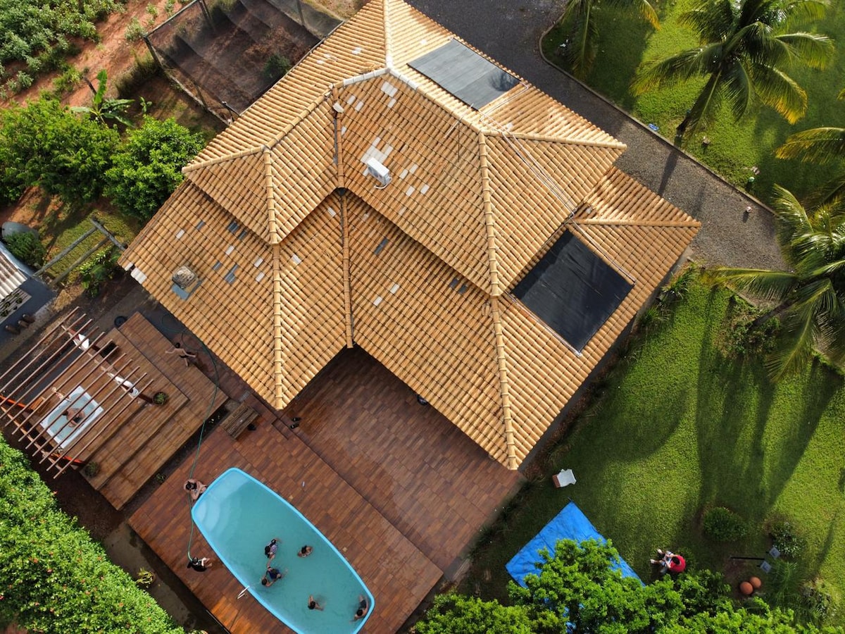 casa com piscina aquecida e quarto ar condicionado
