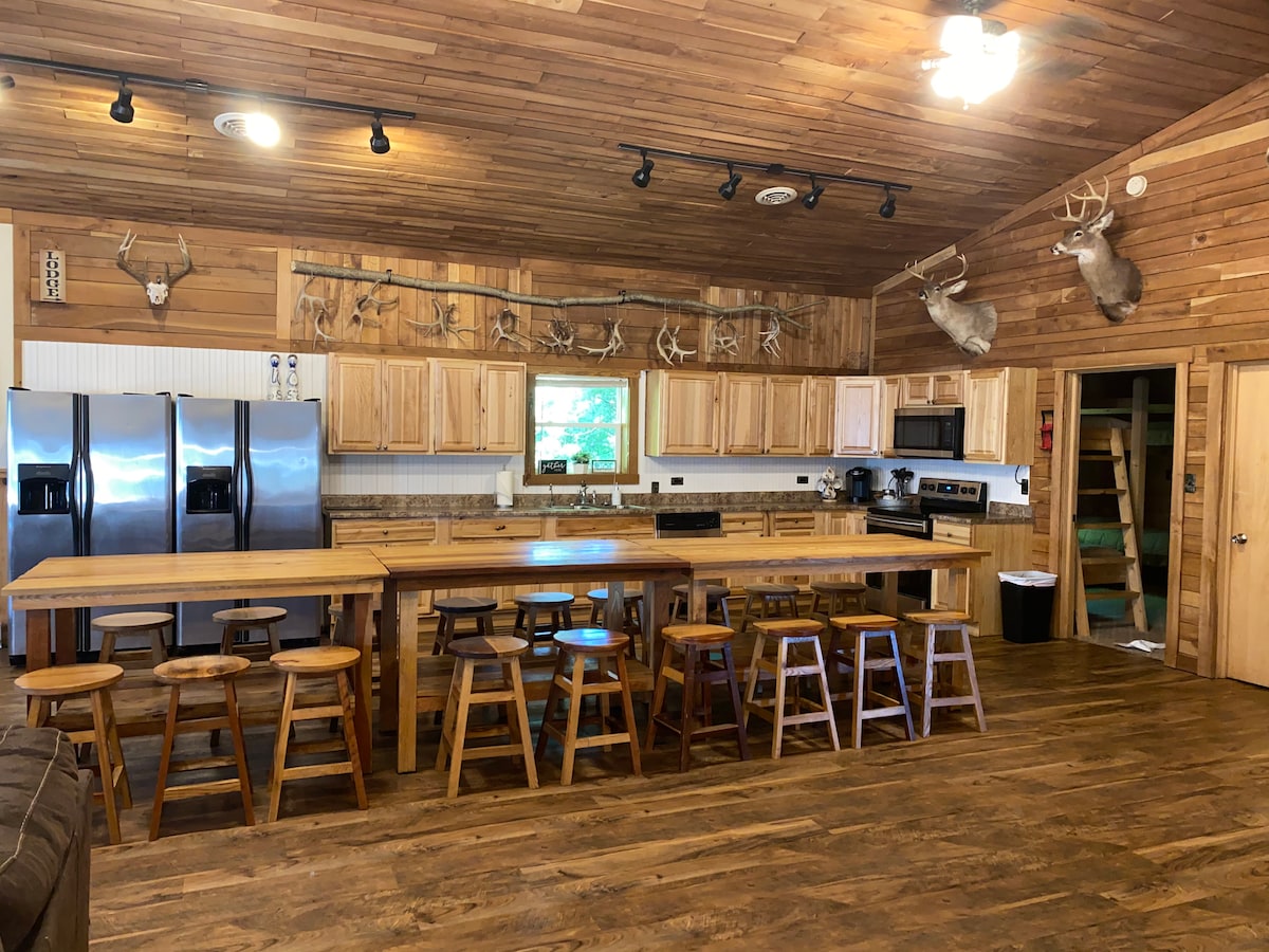 Profitez du cadre charmant de Stone Haven ! Une maison bohème moderne haut de gamme nichée au milieu de 23 acres boisés où vous pourrez vous détendre à l'extérieur sur la terrasse, faire de la randonnée sur les nombreux sentiers dans les bois ou profiter des nombreux équipements que nous avons à offrir. Notre barndominium dispose de 4 chambres, 2 salles de bain et demie, une grande salle familiale et une cuisine avec tout ce dont vous avez besoin. Il y a une grande salle de loisirs avec une table de billard, un jeu de fléchettes, un putting green, un panier de basket et de nombreux jeux au choix.