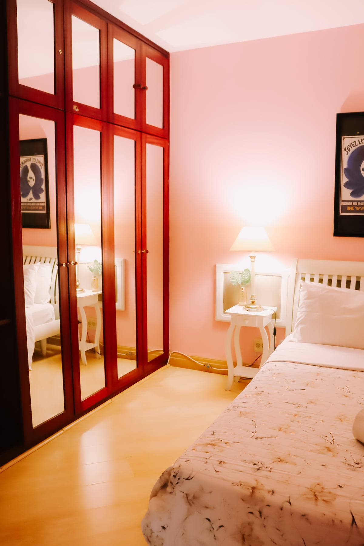 Profitez de la Vila Madalena bohème et artistique, pleine de bars, restaurants et cafés. Vous pourrez découvrir la région ou même faire un tour dans les parcs de la ville avec un vélo, disponible gratuitement. Vous venez travailler ? Concentrez-vous sur votre travail à la table confortable face au balcon vert avec une vue magnifique sur le sommet des arbres. Après tout, profitez de la salle de sport, du sauna et de la salle de billard pour votre loisir complet.