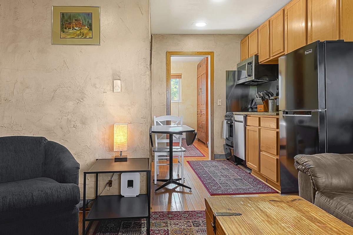 Vous recherchez une escapade confortable dans la « capitale de l'observation des élans du Colorado » ? Bienvenue dans le chalet Majestic Moose ! Cette retraite de 380 pieds carrés est située en ville, récemment rénovée tout en mettant en valeur le caractère et le charme de ses racines historiques. L'aménagement ouvert d'une pièce comprend une salle de bain complète, une kitchenette confortable, un coin repas et un salon confortable. Les arrangements de couchage comprennent un lit Queen Murphy sur mesure et un canapé-lit Queen, ce qui en fait un séjour parfait pour les couples ou une petite famille.