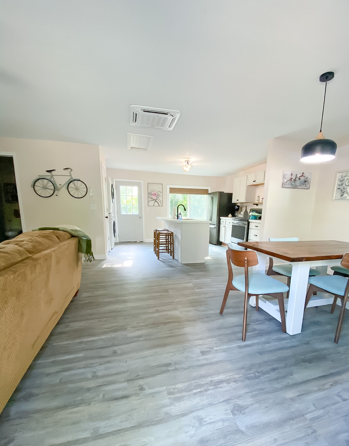 Il y a un foyer au gaz confortable qui crée toujours la bonne ambiance. La cuisine ouverte est entièrement équipée pour cuisiner et faire de la pâtisserie. Le jardin est clôturé, parfait pour les enfants et les animaux de compagnie. Il y a un étang et un charmant sentier naturel juste à l'extérieur de la porte arrière et un parc pour enfants de l'autre côté de la rue, devant la maison. À distance de marche de l'épicerie, des vins/spiritueux, de la salle de sport et des restaurants à proximité. Disponible pour des locations de 27 jours ou plus.