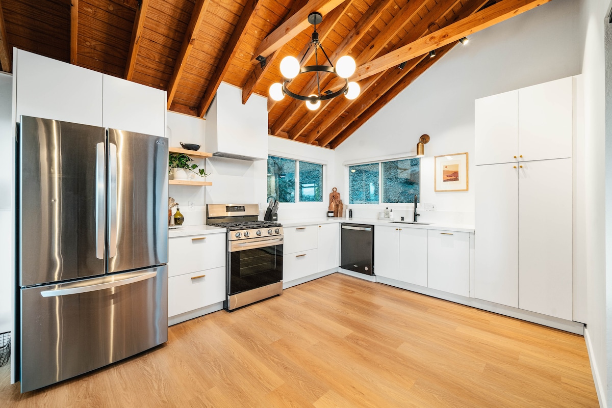 Chalet magique de milieu de siècle : vues épiques et cheminée