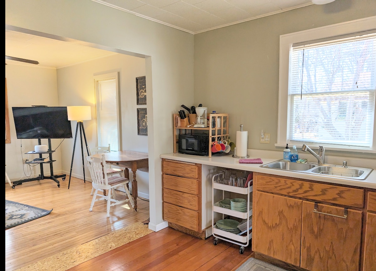 La cabane Iron Willow est à seulement 3-4 pâtés de maisons des pistes cyclables et de la rue principale. Le rez-de-chaussée est un plan d'étage ouvert avec : cuisine entièrement approvisionnée, LR, 2 BR, 1 BA. Le sous-sol dispose de : LR, 1 BR, 1 BR non standard (pas de fenêtre de sortie), 1 BA et placard à linge. Profitez de 5 télévisions, d'une CONNEXION WI-FI rapide, d'une terrasse avant avec barbecue à gaz, d'une table de pique-nique, d'un foyer, de jeux, d'un réfrigérateur avec de la glace et de l'eau, d'un hangar de stockage sécurisé, d'un parking hors rue, d'une arrivée autonome. Équipements à profusion : nous voulons que le saule de fer se sente comme votre « maison loin de chez vous » !