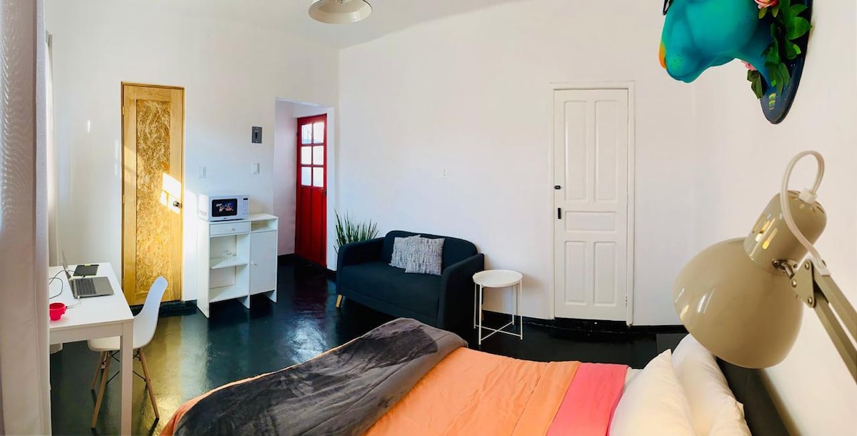 Que vous voyagiez en couple ou seul profitez d'une expérience incroyable dans ce loft situé au cœur du village magique de Tepotzotlán. La terrasse privée est parfaite pour prendre un café le matin, lire un livre ou simplement contempler le paysage pendant que le soleil se couche derrière les montagnes. Profitez d'un séjour confortable : 🛋️ Salle chaleureuse et lumineuse (TV) 🍳 Cuisine aménagée 🛏️ Lit confortable ☕ Terrasse avec vue panoramique 🌿 Environnement calme et privé