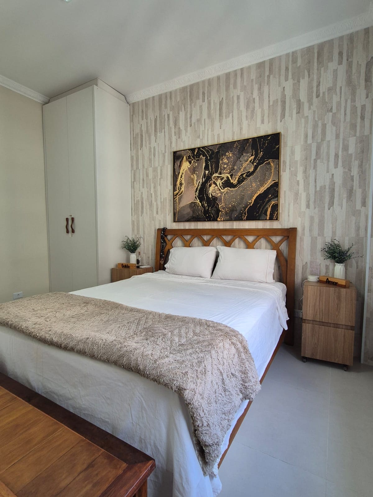 This 55m² apartment is ideal for couples and executives on business trips. It has everything you'd expect from an apartment: practicality and technology. For those coming to spend New Year's Eve in Santos, you can enjoy the festivities without even leaving the building. From the pool area, you can enjoy the sea view, the fireworks, and the city's festive atmosphere without having to deal with traffic, crowds, or a tiring commute after the fireworks.