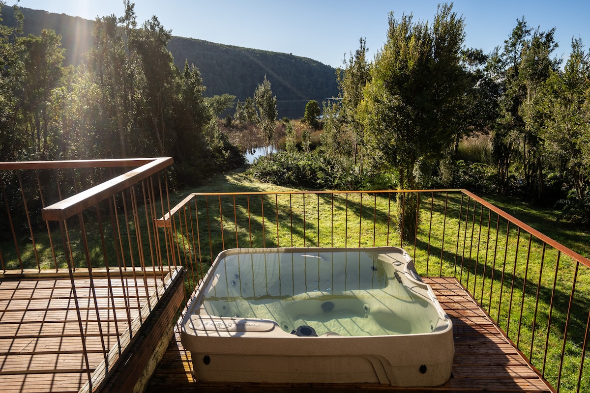 Hermosa cabaña en medio de Chiloé rural. La cabaña está situada específicamente en Teguel Bajo, una pequeña comunidad a 4,5 km de la ciudad de Dalcahue. Se trata de un lugar en medio del campo, rodeado de bosques nativos, a pocos metros del Humedal de Teguel y con una preciosa vista al canal Dalcahue. En el primer piso hay un amplio espacio en donde se encuentra la cama nido, la cocina, living, comedor y el hot tube. En el altillo está la habitación principal con una cama de 2 plazas.