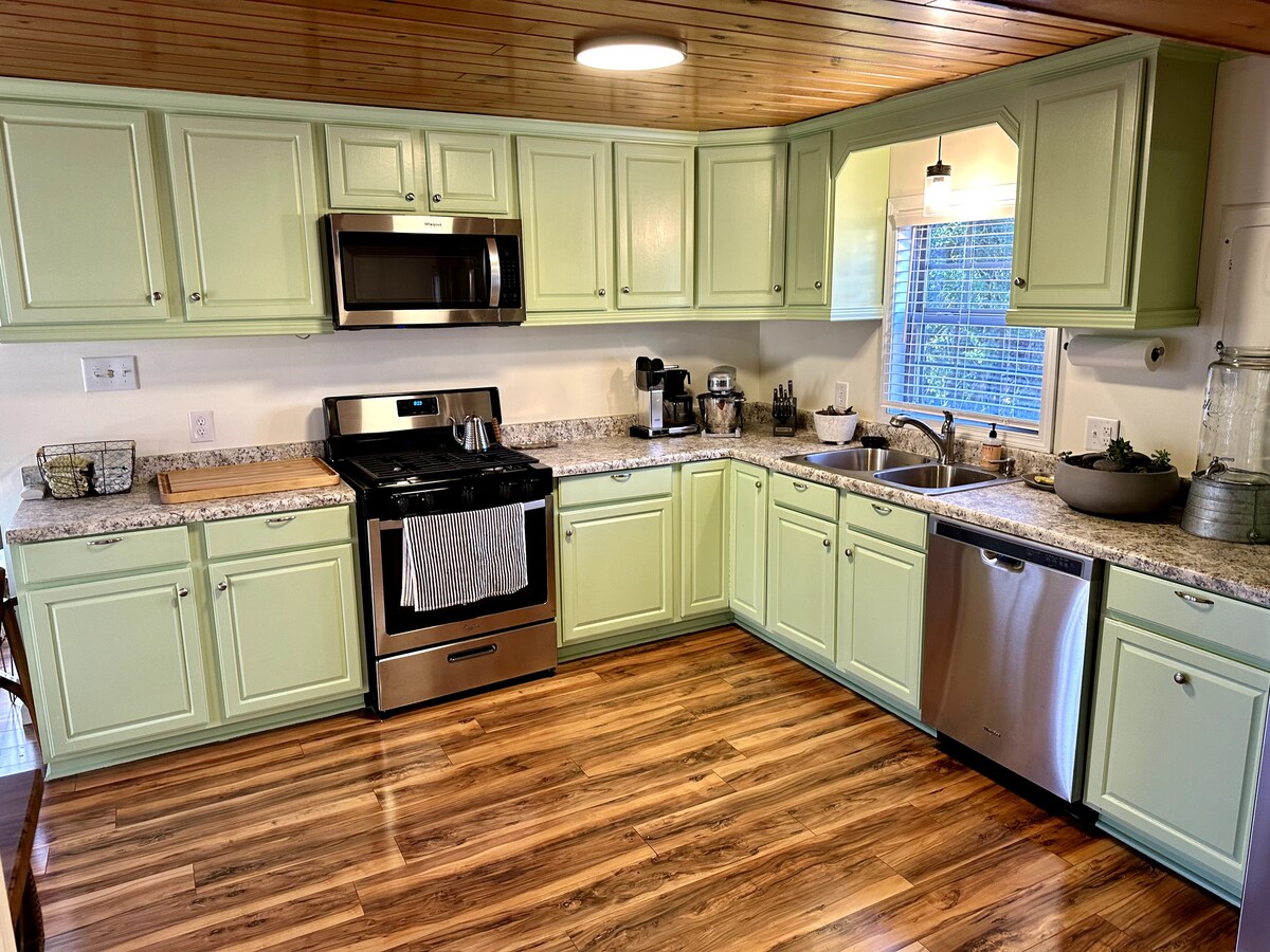Appartement bien aménagé, parfait pour une escapade amusante et sans stress. La chambre principale du premier étage comprend un lit king size, une télévision et une salle de bain attenante. Deuxième BA complet avec buanderie au niveau inférieur. Le loft à l'étage dispose de 1 lit double et 1 lit queen. Le salon ouvert en bas comprend un canapé-lit gigogne, une télévision à écran incurvé de 55pouces, une connexion Internet Wi-Fi. La cuisine bien équipée comprend à la fois une cafetière goutte à goutte et une Keurig, alors apportez vos grains ou dosettes préférés ! Profitez d'une vue boisée et d'une vue sur la faune depuis la terrasse arrière.
