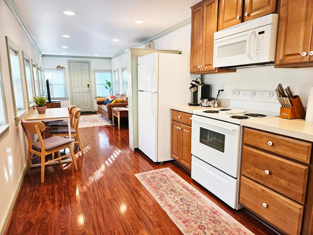 Welcome to Trailside Cottages—your brand new cozy 2BR retreat in Farmville. Step onto the Rails-to-Trails path for an easy walk to Greenfront and Historic Downtown shops, dining, and events. Enjoy quick access to the Appomattox River for scenic floats, then unwind with fast Wi-Fi, comfy beds, a stocked kitchen and easy parking. Bright, clean, and quiet—ideal for weekend escapes, visits to Longwood, Hampden Sydney or a relaxed work-from-anywhere stay. Enjoy the outdoors and recharge.