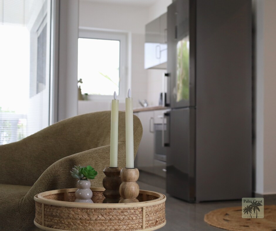 Bienvenue à Palm Crest, un appartement haut de gamme de deux chambres situé dans un emplacement privilégié à Brakkeput Abou, à seulement 2 minutes en voiture de la plage de Jan Thiel. Ici, vous pouvez profiter du confort, de la tranquillité, de l'intimité et du climat toujours estival. L'appartement dispose de la climatisation, d'une salle de bain moderne, d'un salon élégant avec télévision et d'une cuisine entièrement cuisine (avec Machine à café Puro). Votre terrasse privée est directement adjacente à la piscine et vous offre une vue sur l'emblématique montagne de la Table.