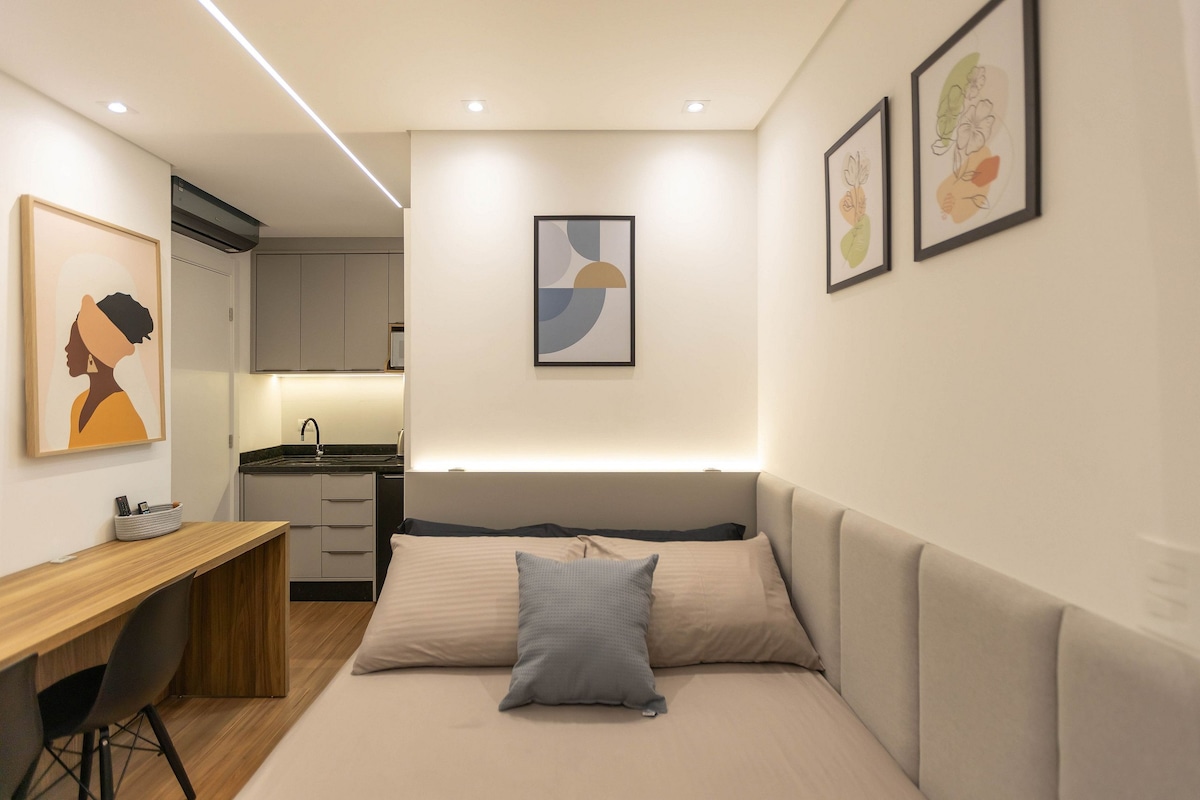 Apartamento aconchegante no Batel, ideal para quem busca conforto e praticidade em Curitiba. Conta com cozinha equipada (mesa de jantar, geladeira, cooktop e micro-ondas), quarto com cama de casal e bancada de trabalho, além de sofá-cama queen. Ar-condicionado quente/frio, blackout para noites tranquilas e ótima localização perto de mercados, farmácias, shoppings e restaurantes, com fácil acesso para quem está sem carro.